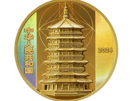 该套金银纪念币正面图案均为应县佛宫寺释迦塔正南面,辅以立面构图分析线,并刊国名、年号。