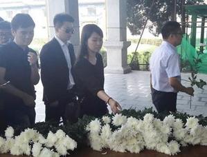 没有花圈,没有挽联,也没有哀乐,现场准备了鲜花,悼念者各持一支,以表哀悼。