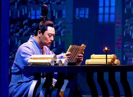 节目基于史料,对这两则事件给予了鲜活演绎,与此同时还进行了合理的艺术创作。戏剧舞台上的老子,少年时期善于发问,青年时期勤于读书,壮年时期精于思考,老师商容先生教诲他,应当把这股求知的欲望,转化为为世间众生求大道、求智慧的志愿。学成后,老子入守藏室为吏,这段守护典籍、努力为学的经历,极为动人。