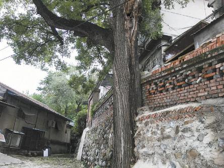 龙泉务村一株古树被嵌入坡道砖墙内。 鹿艺佳摄