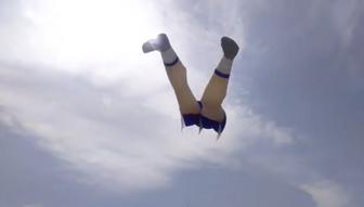 当时,不少人都在放风筝,但是其中有一只风筝格外引人注目,即一只形似人腿的奇特风筝,甚至连袜子、短裤都配置齐全。