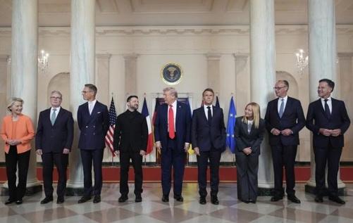 特朗普当场质疑欧方关于俄乌需“先停火”的立场,坚持和谈无需先停火。他还说,美方愿意向乌提供安全保障,但应由欧洲主要负责。