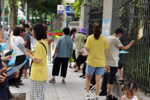 澎湃新闻注意到,在这所小学门口,仍有校外培训机构前来向家长们分发招生传单,但几乎都来自较少受“双减”政策影响的非学科类机构,比如针对4~12岁孩子的“体能训练班”,以及美术类、少儿编程等等。这种场景与以往学校门口各类学科类培训机构争相发放传单的“盛况”已然不同。