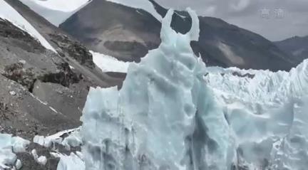 总台记者 唐巍:我现在所在的位置就是海拔5800米的过渡营地,今天我将前往海拔6500米的前进营地,这一路上刚好是东绒布冰川冰塔林分布最密集的地方,那么今天我们还有幸请到了青藏高原研究所冰芯组的李真教授跟我们一路同行,他会在路上跟我们介绍冰塔林的各种形态,形成原因等知识。