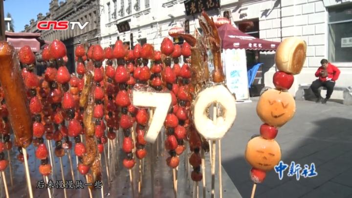 这不,最近,哈尔滨道外区巴洛克街区的“糖葫芦小哥”火了起来。一条晒“暗黑”糖葫芦的短视频,播放量超125.9万,点赞数逾2万,留言上千条。