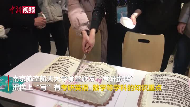 据悉,每年考研冲刺月,南京航空航天大学食堂都开放提供给学生作为晚间自习室,并配备有空调和宵夜。今年是该校给学生发放考研“记忆蛋糕”的第二年。