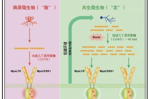 研究团队发现,位于植物细胞膜上的LysM类受体激酶能够识别来自共生微生物的信号分子或来自病原微生物的信号分子,并触发相应的共生或免疫生理反应。