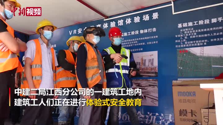 近期,随着疫情防控形势逐渐好转,建筑行业也陆续复工复产。4月9日,在江西南昌九龙湖新区的一建筑工地内,建筑工人们正在进行体验式安全教育。