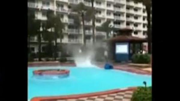 风暴登陆美国佛州 小区泳池形成“水龙卷”