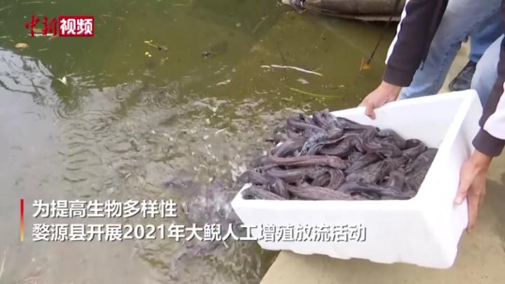 10月29日,为提高生物多样性,江西婺源开展2021年大鲵人工增殖放流活动,婺源县农业农村局的工作人员在该县石门峡、秋口镇大坝河、江湾镇湖山等16个投放点放流大鲵2000余尾。