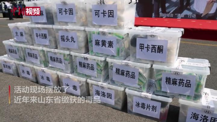 6月1日,山东省禁毒宣传进航海启动仪式暨毒品集中销毁活动在青岛举行。活动现场摆放了近年来山东省缴获的毒品,仪式结束后,统一装车由特警武装押运至销毁地点进行无害化销毁。