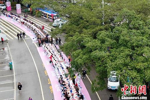 广西办千米螺蛳粉长桌宴 数千人一同“嗦粉”