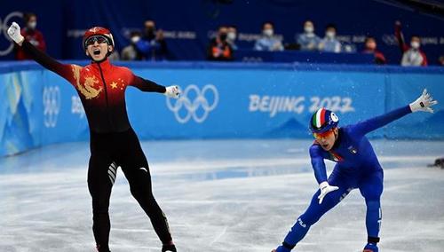 这是武大靖连续两届冬奥会有金牌入账,也是任子威、范可新、曲春雨首次登上奥运冠军领奖台。