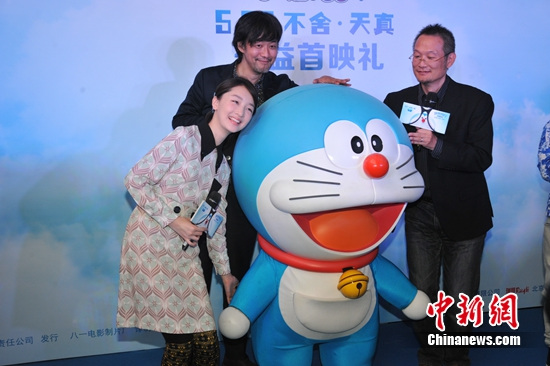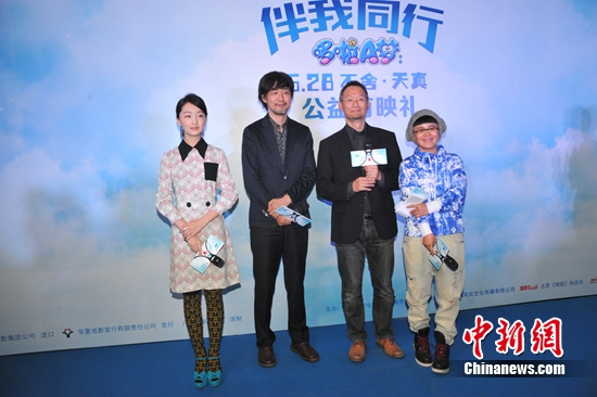 中新网北京5月24日电(记者 张曦) 24日下午,3D动画电影《哆啦a梦:伴我同行》在北京举行首映礼,导演八木龙一、山崎贵携中文版配音演员金龟子、周冬雨以及主题曲演唱者金贵晟到场助阵。周冬雨表示自己从小就爱看《哆啦a梦》,并且和静香一样都喜欢洗澡。