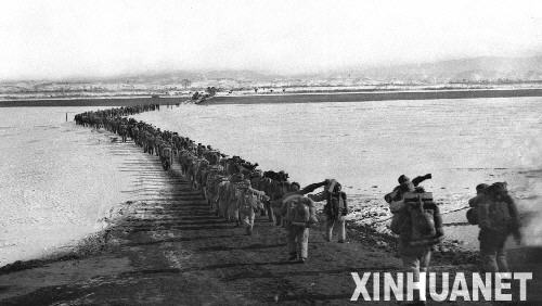 1950年10月初,美国侵略军悍然越过“三八”线,并把战火烧到中国边境。10月19日,以彭德怀为司令员兼政治委员的中国人民志愿军分别从丹东、长甸河口、集安等通过鸭绿江进入朝鲜前线,和朝鲜人民一道共同抗击侵略者,拉开了抗美援朝战争的序幕。