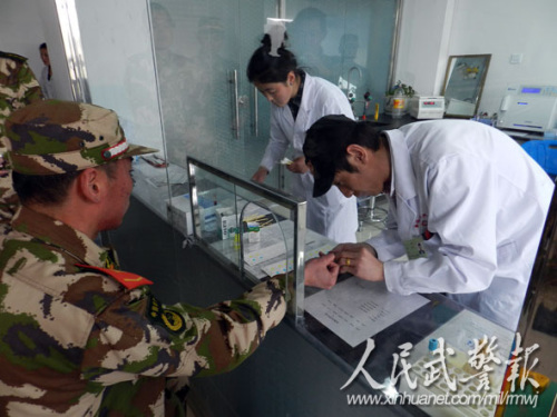 “血库告急!急需AB型血,请求武警官兵援助。”危急关头,州人民医院久院长向武警果洛支队打来求助电话。支队政委徐西龙迅速命令参谋长高明胜安排直属大队所有AB型血的官兵前往州医院紧急献血,尽全力给予援助。短短几分钟,15名符合献血条件的官兵来到医院,在血站工作人员的引导下有序登记、测量血压、抽取血源……党员干部身先士卒模范献血,其他战士热情高涨争先恐后。