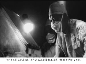 一张在深夜穿着防辐射服的工作者的照片十分吸引人,图上的人便是当年的青年车工原公浦。1964年5月1日凌晨3时,他完成了中国第一枚原子弹的核心部件———铀球加工。小小铀球,是中国20万科研人员忙了10年的成果,哪怕是个小闪失,只要一点差错,所有人的劳动就付诸东流,在这样的高压之下,原公浦成功完成了任务,对这样一个在我国核武器研发中的高级技工人才,著名科学家钱三强曾形容原公浦“他是一颗螺丝钉,一颗非常重要的螺丝钉。”