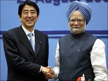 印度总理辛格(右)与日本首相安倍晋三(左)