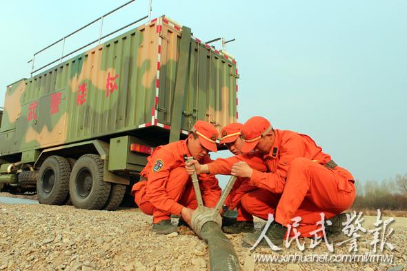 期间,远程输水管线作业小组不畏艰难、敢于挑战,专门挑选地貌复杂、输水难度大的地域进行训练;主要开展以特殊地理环境下的管带铺设与撤收、水泵架设与撤收和电子仪器操作为主训练,重点加强培养指挥员与战斗员之间的配合默契、战斗员与装备之间的磨合,实现人与人、人与装备之间配合零缝隙,充分的发挥最大效能。该小组还尝试在离水源远150米以外的情况下进行泵水并取得成功,拓展了远程输水管线作业车远程取水的能力。