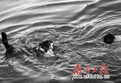 事发4个多小时后,蛙人在事发地附近搜寻到了邱兴和的遗体。 南方日报记者 张由琼 摄