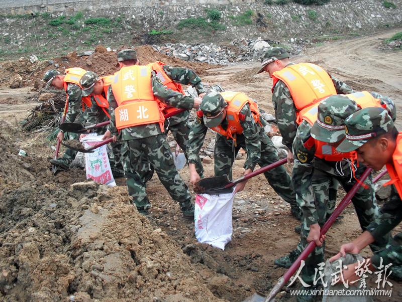 装填沙袋!孝感武警做好抗洪抢险准备(图)