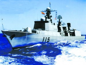 沈阳舰,舷号115,是我国自主研制的第三代051C型导弹驱逐舰,舰长155米,宽17米,满载排水量6500吨。沈阳舰2006年服役于海军北海舰队,此次担任中国海军参演编队的旗舰。