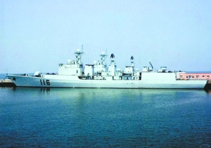石家庄舰,舷号116,是我国自主研制的第三代051C型导弹驱逐舰,舰长155米,宽17米,最高处约10层楼高,满载排水量6500吨。石家庄舰2007年起服役于海军北海舰队,近年来先后参加科研、三军联演等重大任务20余项,2009年成为人民海军成立60周年多国海上阅兵的阅兵舰,随后又出访了智利等南美三国,被誉为海军新一代的大洋旗舰。