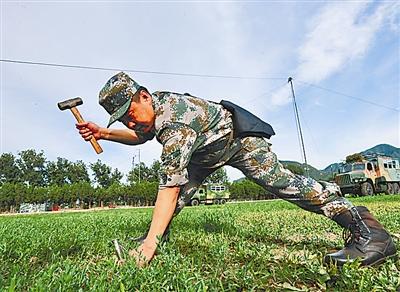 17时27分,倪先允在架设天线训练中动作规范,快速准确。