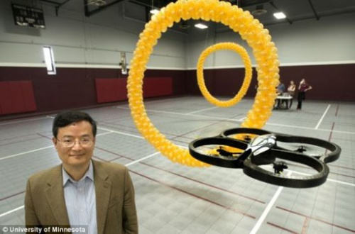 美国明尼苏达州大学教授何斌(音)所率领的团队研制出可以用意念控制的四旋翼直升机。何斌表示,这是人类第一次能够通过自己的意念控制飞行机器人的飞行。这架四旋翼直升机的平均直线速度为每秒0.69米。