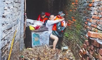 7月14日,武警福建省总队三明市支队官兵转移被困群众。 卢立杰摄