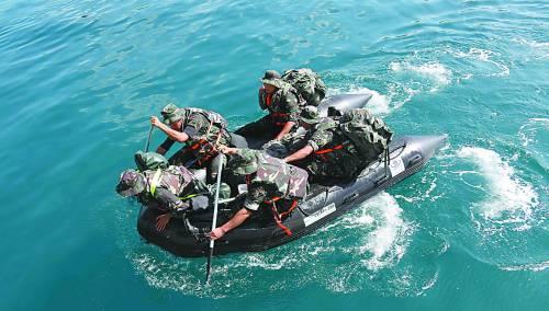解放军特战精英在海上竞赛课目中划舟前进(图)