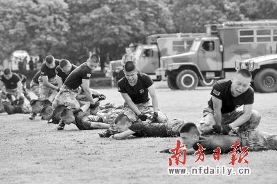战士们为前来参观的市民表演格斗术。 记者 曾强 摄