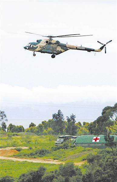 南京军区组织直升机卫勤保障演练 冯敬摄