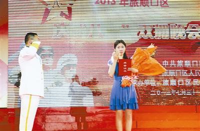 图:驻地庆“八一”双拥晚会上,主持人代表官兵向“最美军嫂”曹静敬礼。张海龙摄