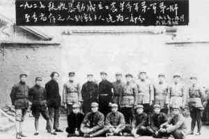 毛泽东(后排左三)与张宗逊(前排左二)等参加秋收起义的同志在延安合影。