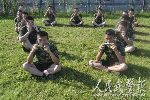 武警北京总队七支队集体练口琴为心灵解暑(图)