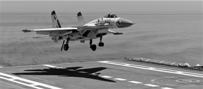 2009年8月,歼-15进行了首次试飞。去年11月5日,《解放军报》头版正式发布了中国航母舰载机触舰起飞的消息。去年11月25日,随着飞行员戴明盟驾驶编号为552的歼-15在“辽宁”号上成功着舰并起飞,“飞鲨”终于揭开神秘的面纱。