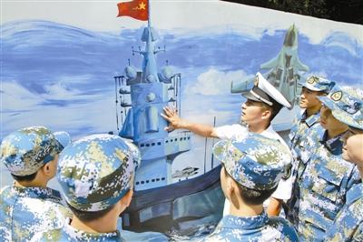 9月8日,东海舰队某训练基地带兵骨干给入营新兵介绍我国第一艘航母辽宁舰的基本情况。新兵入营后,该基地及时将强军目标作为新兵入营第一课,激励新战士牢记强军目标、献身强军实践。 本报特约通讯员 陈鹏鹏摄