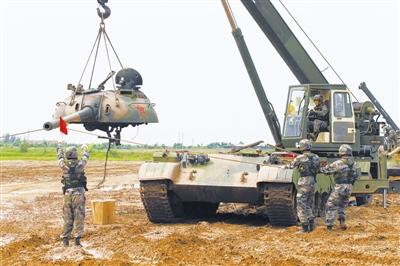 演练现场硝烟弥漫。随着一辆辆装备遭“敌”不同样式的打击毁伤,保障部队反应迅速:技术侦察组对战损区域目标实施技术侦察,利用北斗系统、车载战损评估系统上报战损情况;指挥所依据保障力量现状,确定保障方案;各路保障力量采取小群多路方式向战损区快速机动。记者在现场看到,各种装备遭敌布雷和空中火力打击,坦克触雷,履带被炸断,负重轮被炸坏……战场抢修队员乘坐抢修车辆,穿过硝烟抵达战损装备,一气呵成地连接履带、封焊弹孔、更换负重轮,几分钟后,修复的坦克如伤愈的骏马,精神抖擞地再次投入战场……