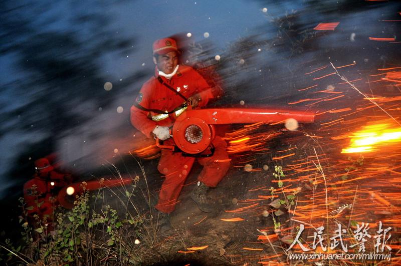 今年2月17日,四川德昌阿七乡发生森林大火大火。大火欲“袭击”村庄,参战官兵与火魔展开零距离“厮杀”,此次奋战保住了村庄。图片来源:人民武警报