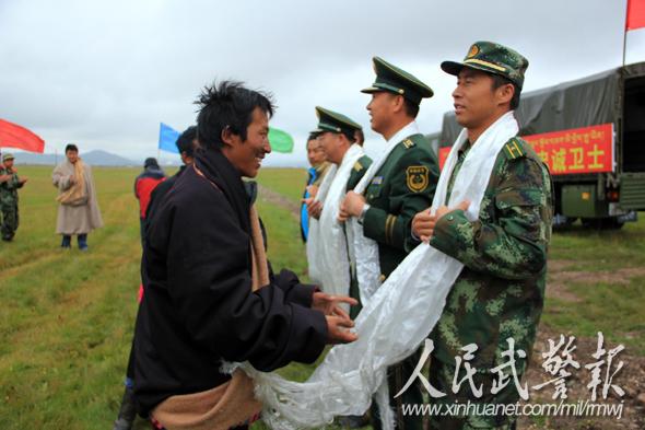 参与互动(0)牧民群众自发地为官兵敬献哈达。图片来源:人民武警报