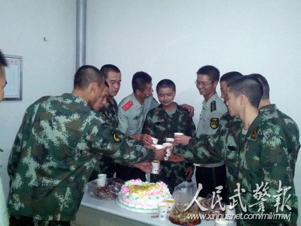 为缓解新兵的思乡之情,大力营造温馨和谐警营氛围,连队主官把新同志的生日都一一记在笔记本上。通过朴实、真挚的生日祝福,让新战友“兵”至如归,切身感受到部队大家庭的温暖。(刘朝军)
