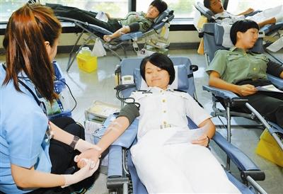 9月18日,驻港部队官兵们在献血。当日,驻港部队在驻港部队医院组织第16次无偿献血活动,有400名官兵参加。黄本强摄