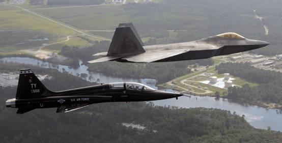 第325战斗机联队除了增加部署“猛禽”战机外,第三季度末还将增加部署10架诺格公司的T-38教练机,届时,该联队的T-38总部署数量将达20架。T-38是小型双发喷气教练机,该机用于模拟敌机供F-22训练使用,由于该机没有雷达以及不能挂载空中训练导弹,在训练中用于模拟敌机有一定的局限性,但是该机有利于“猛禽”训练时开放航线。(张斌)
