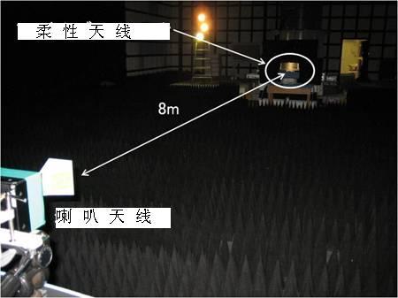试制的天线进行试验评价,在电波暗室内,天线以各种不同的弯曲来进行测试。