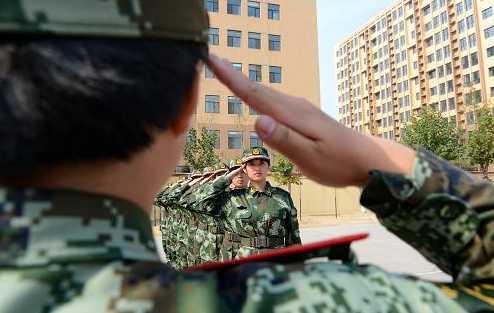 10月16日,河北省公安边防总队新训团的新兵在学习敬礼动作。