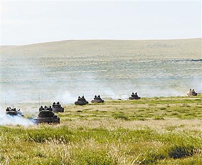 一天上午9时整,枪声、炮弹爆炸声、发动机轰鸣声打破了大草原的宁静,一场带战术背景的合成营实弹检验开始了。在营长王克澜的指挥下,炮兵分队对“敌”指挥所和炮兵阵地实施压制射击,坦克连队对“敌”装甲目标实施火力打击,不到一小时就突破两道防线。演习结束,导演部通报战果:坦克和步兵分队实弹命中率均在良好以上。