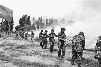 宁夏贺兰县民兵演练森林防火灭火(图)