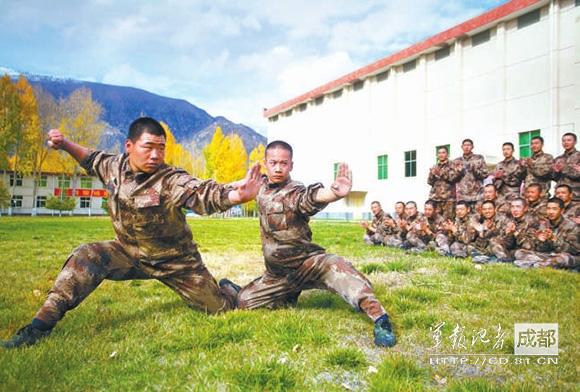 功夫“兄弟”夺冠驻藏某工兵团新兵营比武(图)