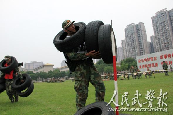 搬运轮胎极限对抗。图片来源:人民武警报